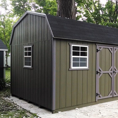 These storage sheds features classic barn roofs or ranch styling. Many have extra wide door openings that easily accommodate lawnmowers, tractors, bicycles and other gardening equipment. They have asphalt shingles, or Metal roofing, resilient wood siding and a strong wood frame.